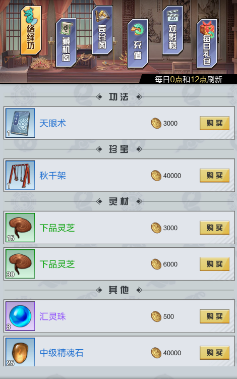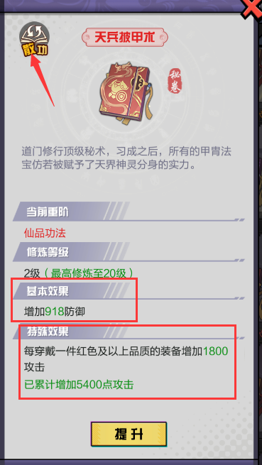 「功法」可以通过探宝玩法/商店的络绎坊途径获得哦~功法也分为《秘卷》《法诀》《心经》三个系列,三个系列都有着基础效果和特殊效果加成俩种属性加成(点击对应功法可查看到)。功法也可以通过潜能来强化从而获得更多的属性哦