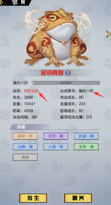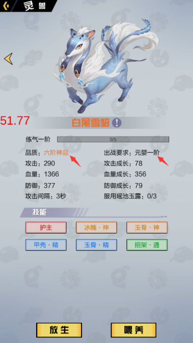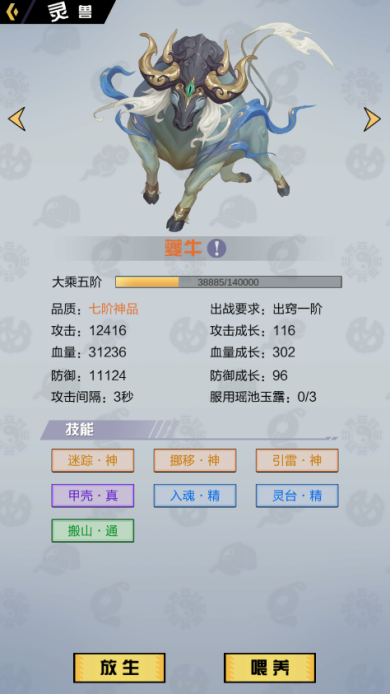 成长提升需要消耗瑶池玉露,每一只灵兽使用上限为3个。瑶池玉露可以通过奇珍阁进行获取~