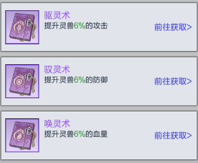 另外对于灵兽的属性值,修真者们可以通过功法获取额外的属性值收益,比如图内这几本功法,皆是可以通过探宝玩法进行获取哦~